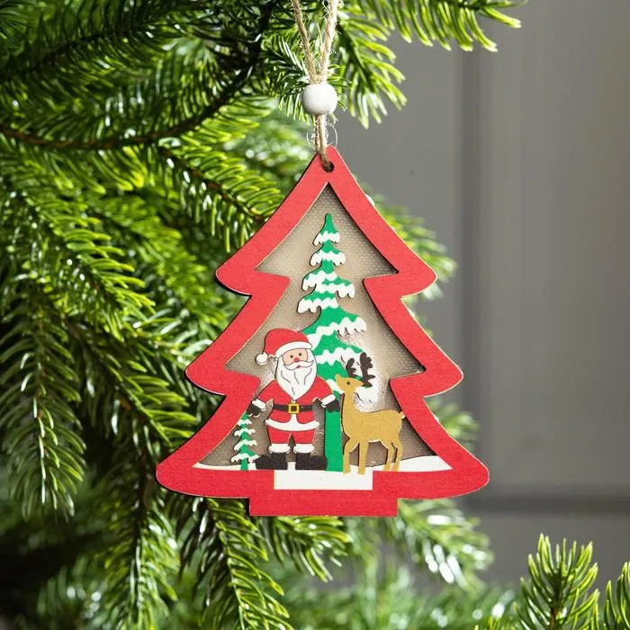 Ёлочная игрушка «Красная ёлочка с Дедом Морозом», от батареек, свечение тёплое белое