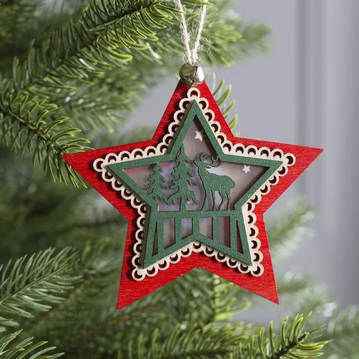 Ёлочная игрушка «Красная звезда с оленем», от батареек, свечение тёплое белое — Характеристики