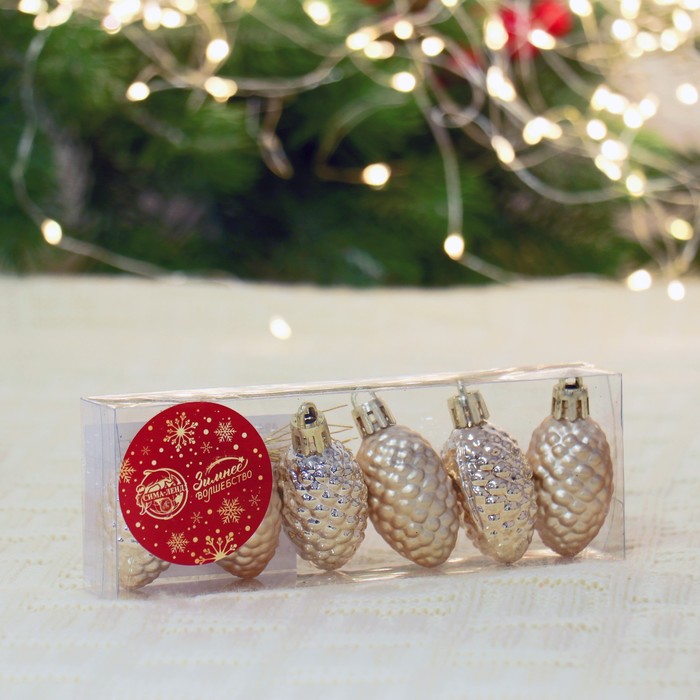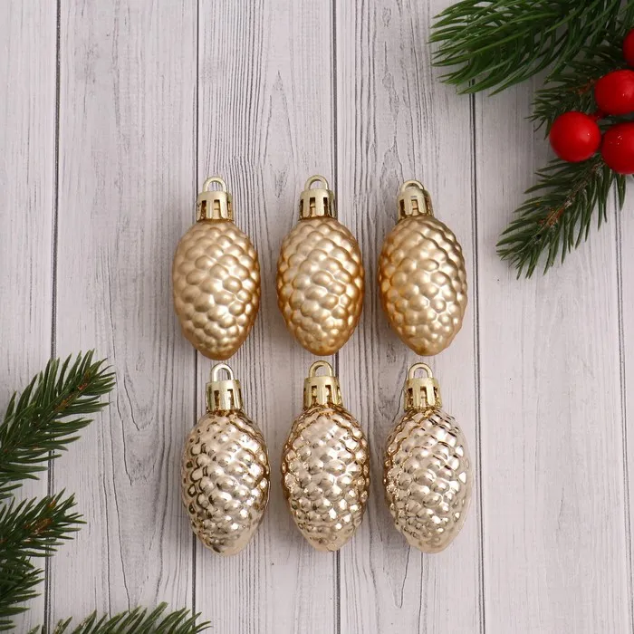 Ёлочная игрушка "Лесные шишки" (набор 6 шт) 2,5х4 см, золото — Характеристики