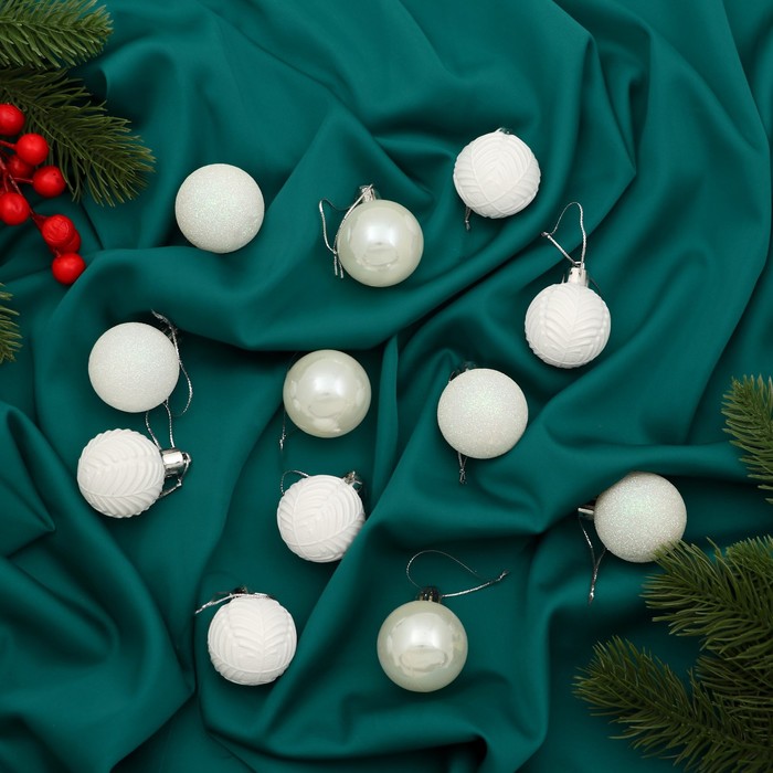 Ёлочные игрушки «Мелодия», шары новогодние, d=4 см, набор 12 шт., веточки, белый