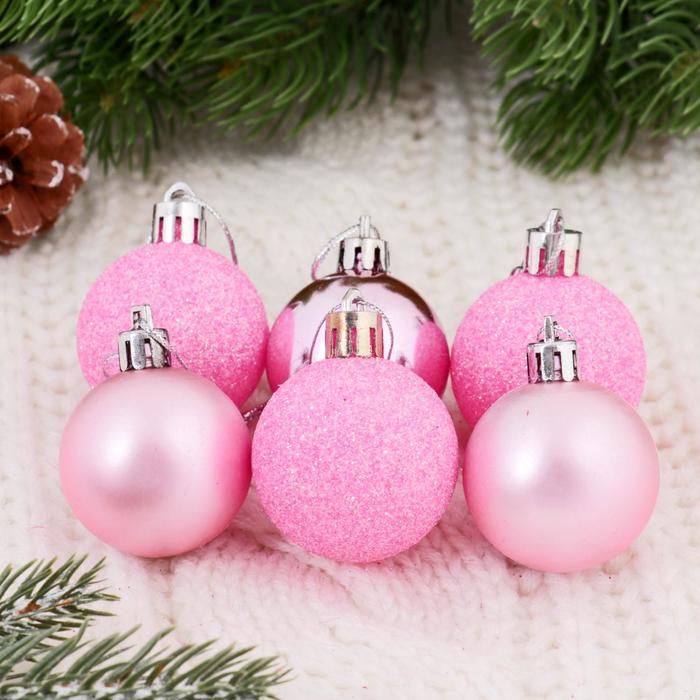 Ёлочные игрушки «Переливы ассорти», шары новогодние, d=4 см, набор 12 шт., розовый