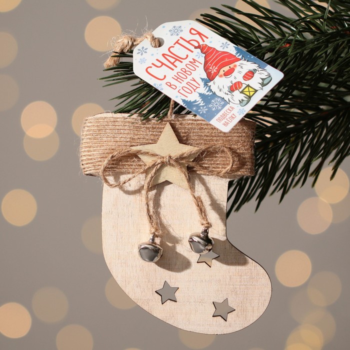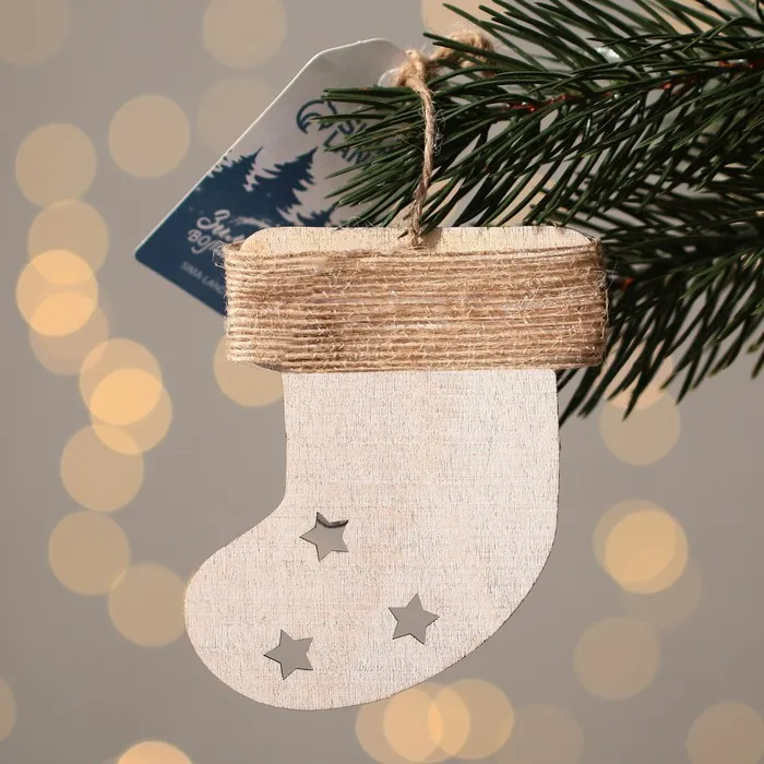 Ёлочная игрушка новогодняя «Носочек», дерево, 9х10 см — Характеристики