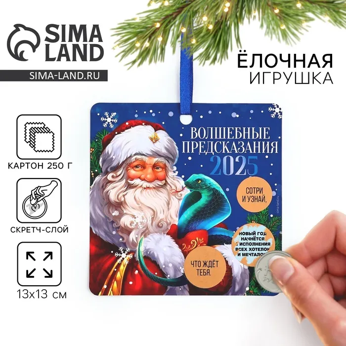 Ёлочная игрушка новогодняя со скретч-слоем «Волшебные предсказания», на Новый год,13 х 13 см — Характеристики
