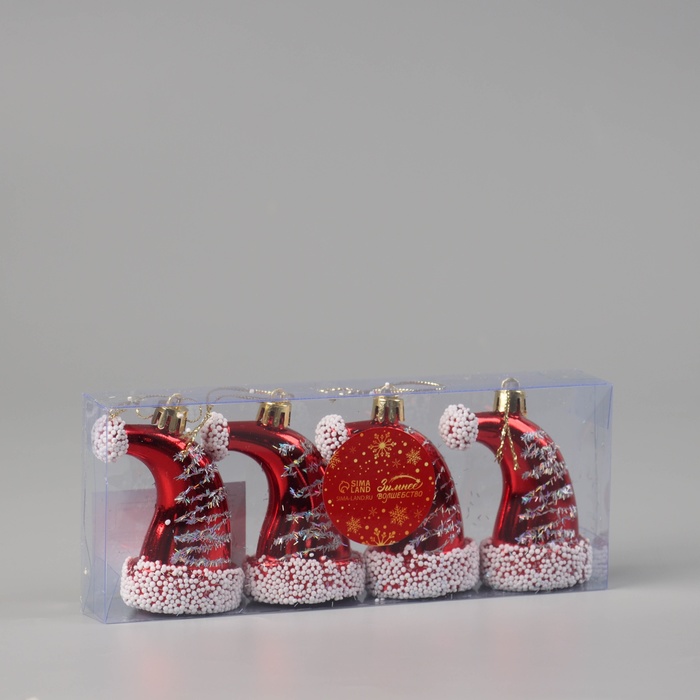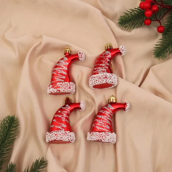 Ёлочная игрушка "Новогодний колпачок" (набор 4 шт) 8х4,5 см, красно-белый — Характеристики
