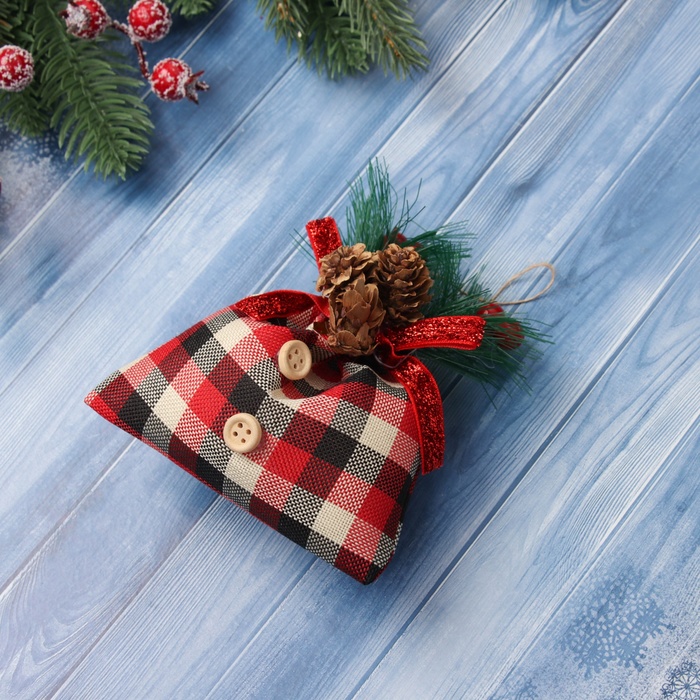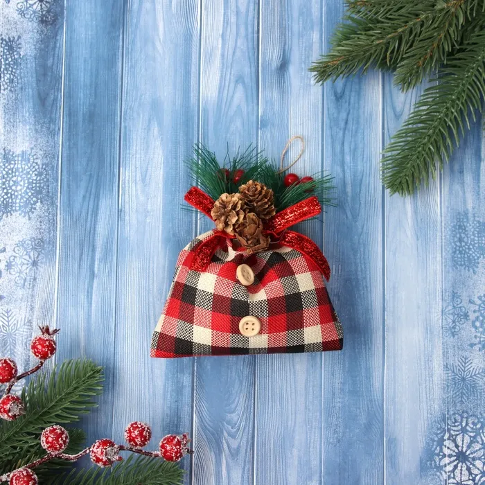 Ёлочная игрушка "Новогодний мешочек в клетку" 12,5х8,5 см, красный — Характеристики