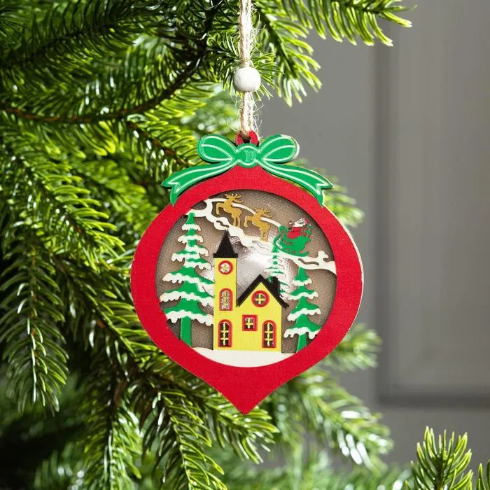 Ёлочная игрушка «Новогодний шар», от батареек, свечение тёплое белое