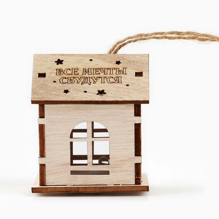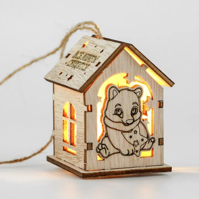 Ёлочная игрушка «Домик с птицей», от батареек, свечение тёплое белое