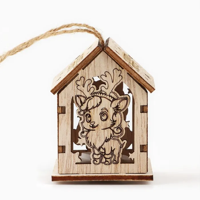 Ёлочная игрушка «Домик с оленем», от батареек, свечение тёплое белое