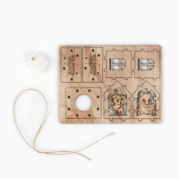 Елочная игрушка деревянная «Зимняя ель» МИКС