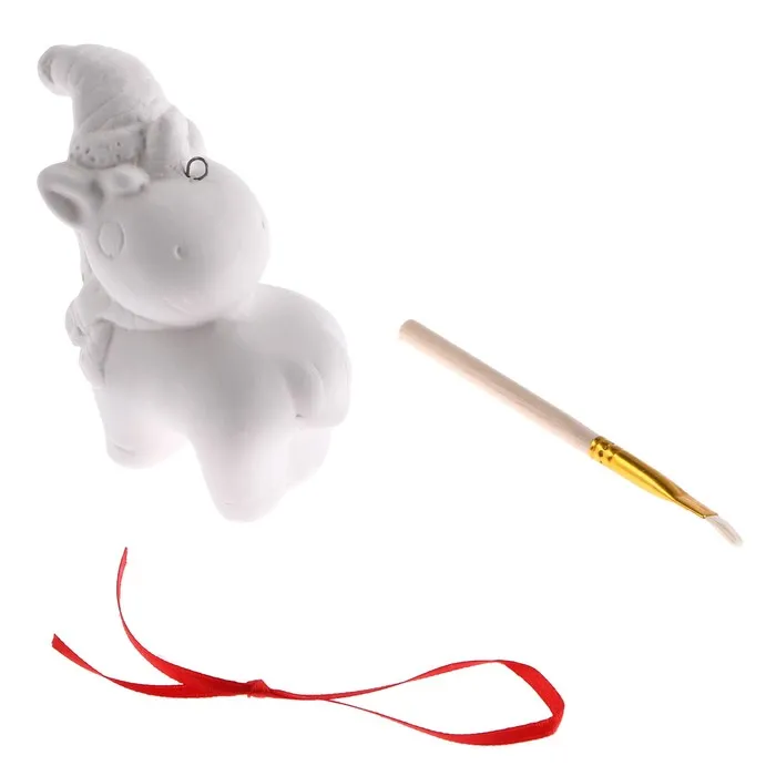 Ёлочная игрушка под раскраску «Единорог в колпачке» с подвесом, кисть — Характеристики