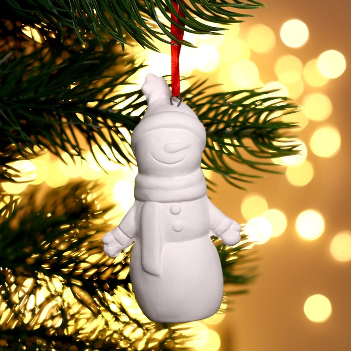 Ёлочная игрушка под раскраску «Снеговик» с подвесом, кисть — Характеристики