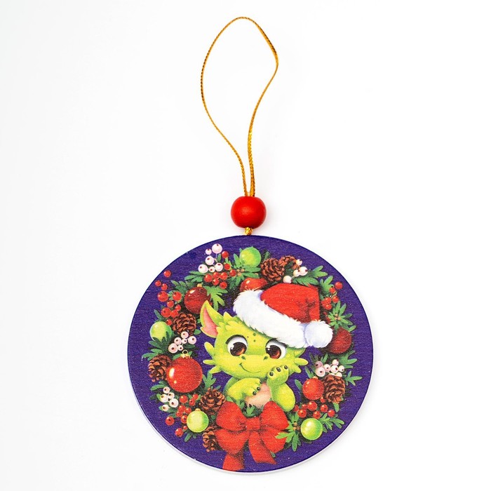 Ёлочная игрушка - подвеска деревянная «Новый год! Озорной дракончик»