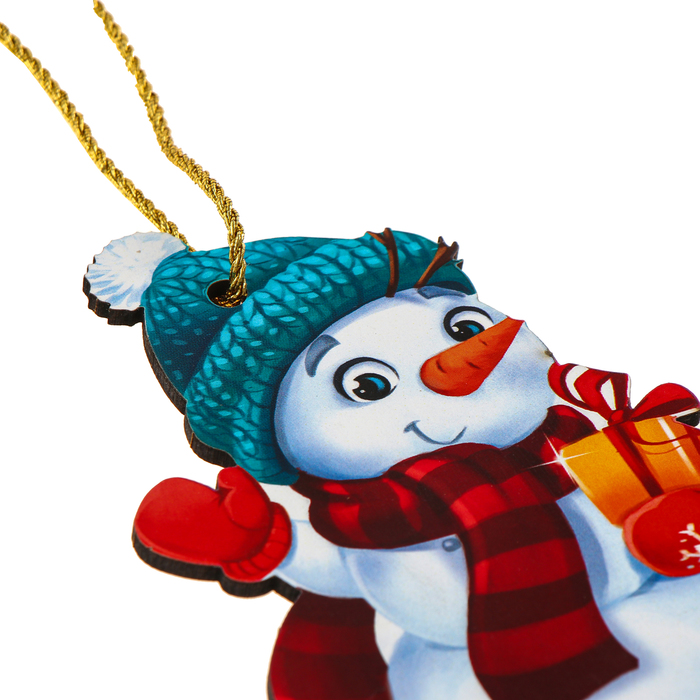 Ёлочная игрушка - подвеска деревянная «Новый год! Снеговичок»