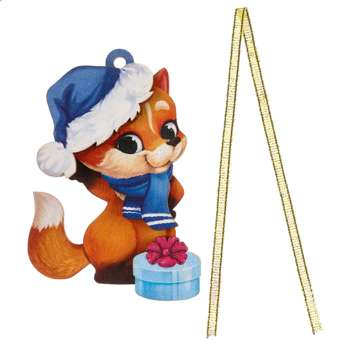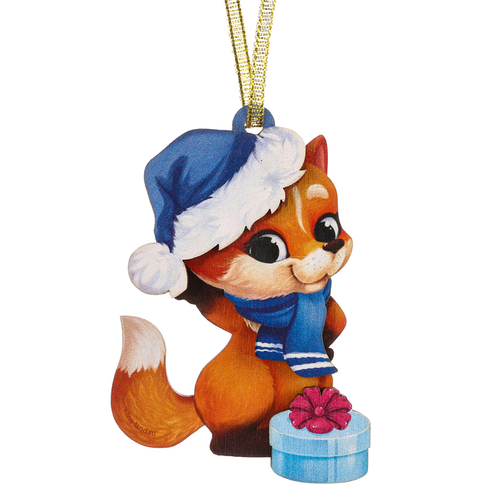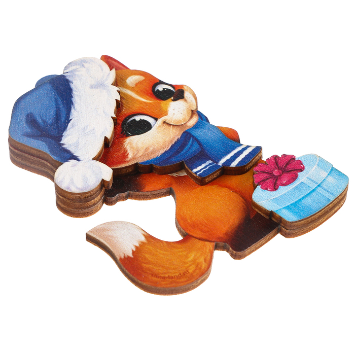 Ёлочная игрушка - подвеска деревянная сборная «Новый год! Лисёнок»
