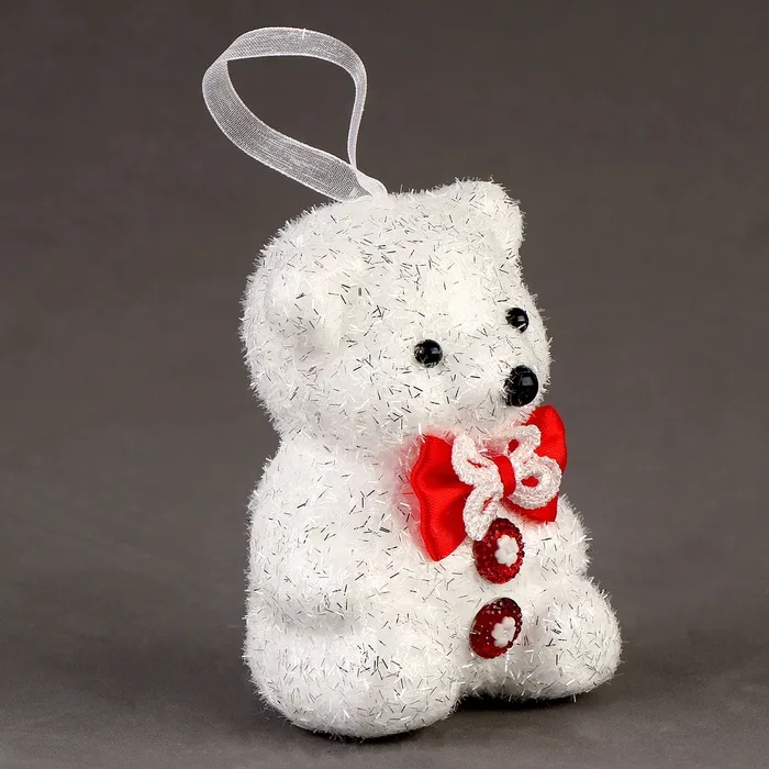 Ёлочная игрушка - подвеска из пенопласта «Блестящий мишка» с бантиком, 10 см, набор 3 шт. — Характеристики