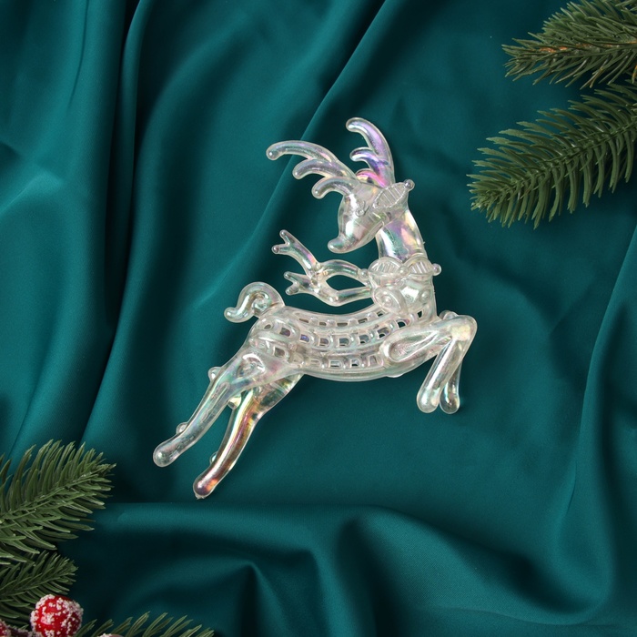 Ёлочная игрушка «Зимнее волшебство. Олень резной» пластик, 10,5х12 см, прозрачный перламутр