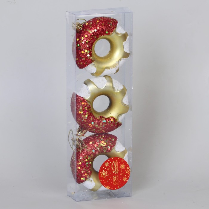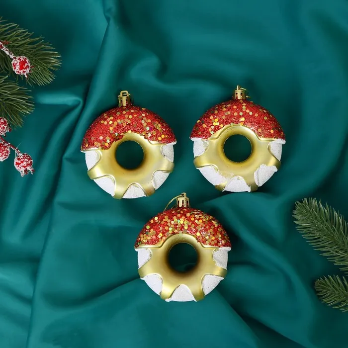 Ёлочная игрушка "Пончик праздничный" (набор 3 шт) 7х8 см, МИКС — Характеристики