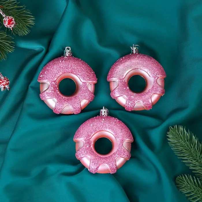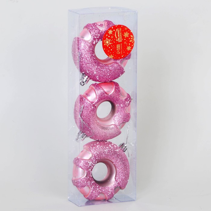 Ёлочная игрушка "Пончик праздничный" (набор 3 шт) 7х8 см, сиреневый — Характеристики