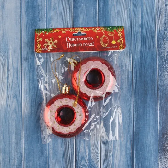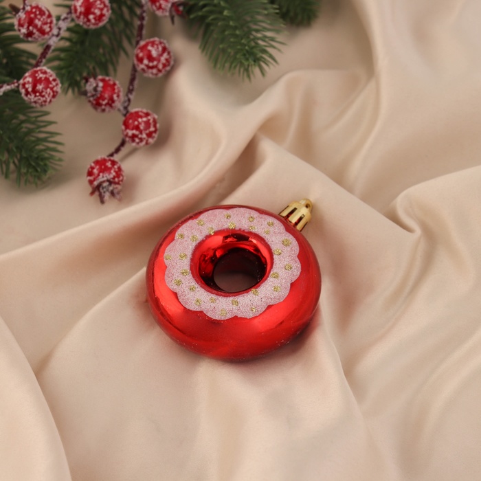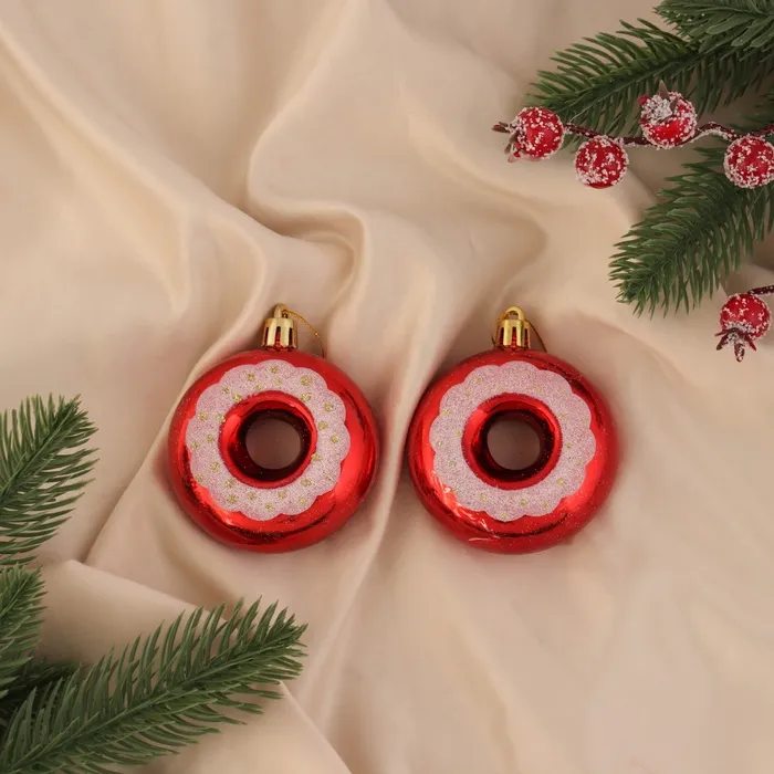 Ёлочная игрушка "Пончик с полоской" (набор 2 шт) 7х6, красный — Характеристики