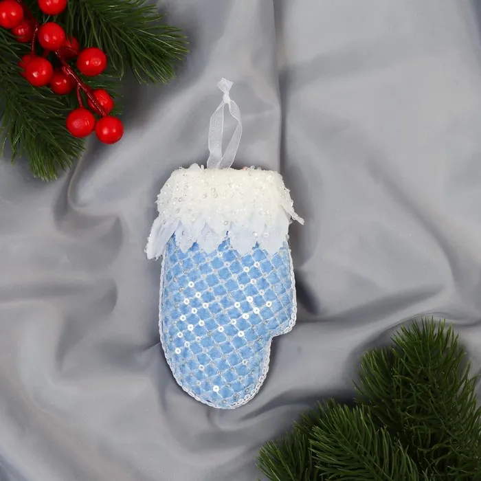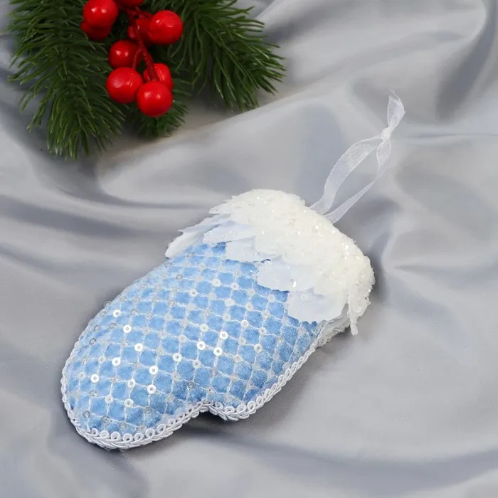 Ёлочная игрушка "Рукавица элит" 7х12 см, бело-голубой