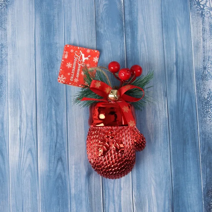 Ёлочная игрушка "Руковичка с ягодками" 12х6,5 см, красный — Характеристики
