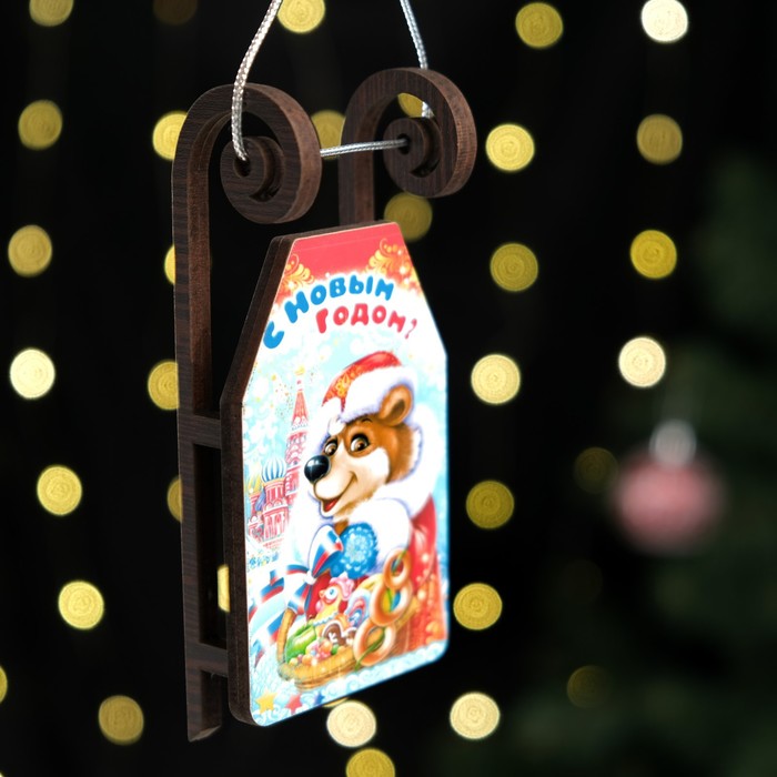 Ёлочная игрушка «Саночки с мишкой», 12.5×6 см — Характеристики