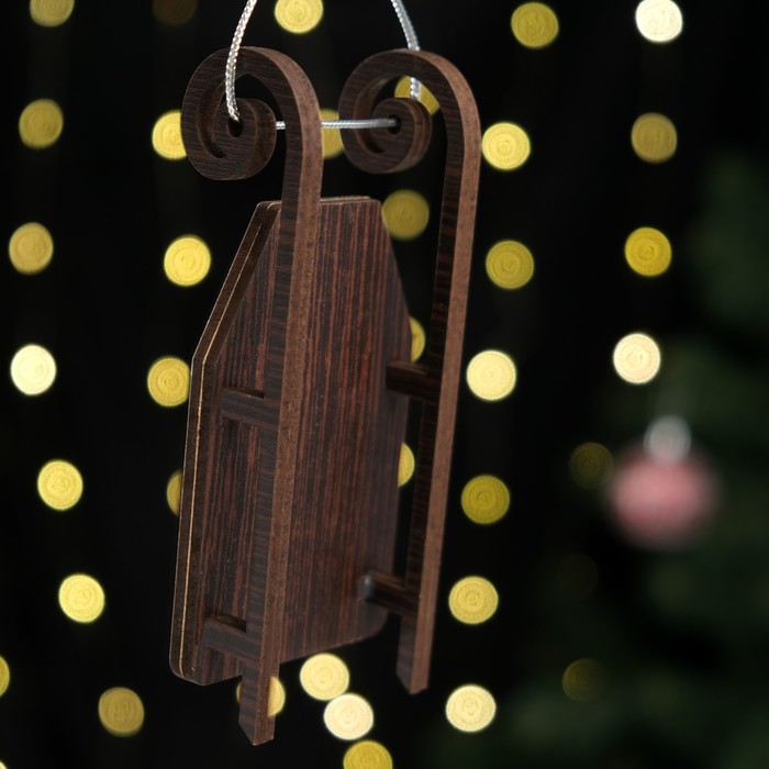 Ёлочная игрушка «Саночки с мишкой», 12.5×6 см