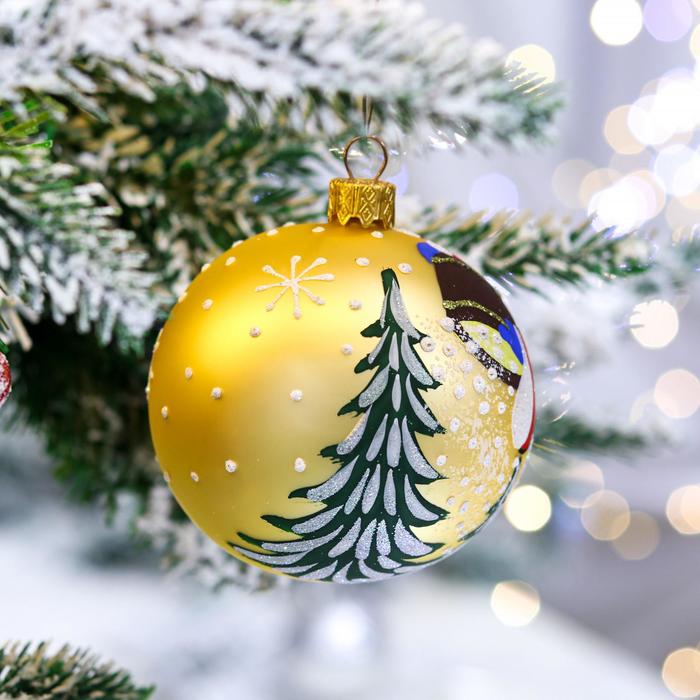Ёлочная игрушка Шар «Дед Мороз в лесу», 80 мм, ручная роспись, стекло — Характеристики