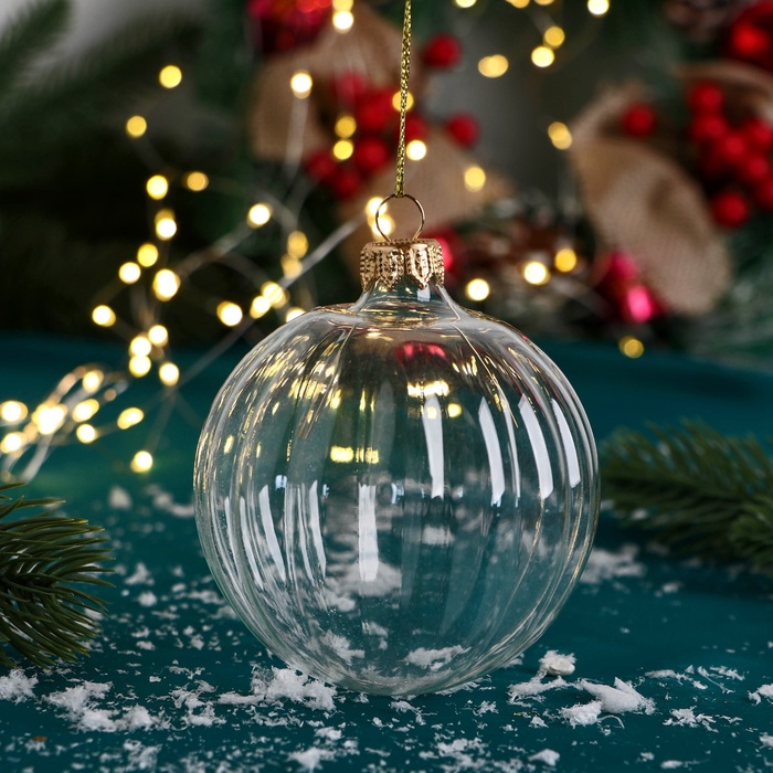 Рифлёный шар не только украшает ёлку, но и наполняет пространство светом и радостью. Он напоминает о волшебстве зимних праздников, создавая уютную и тёплую атмосферу в вашем доме. Прозрачный шар будет отлично смотреться в сочетании с яркими гирляндами и другими стеклянными украшениями, добавляя глубину и многослойность в декор.