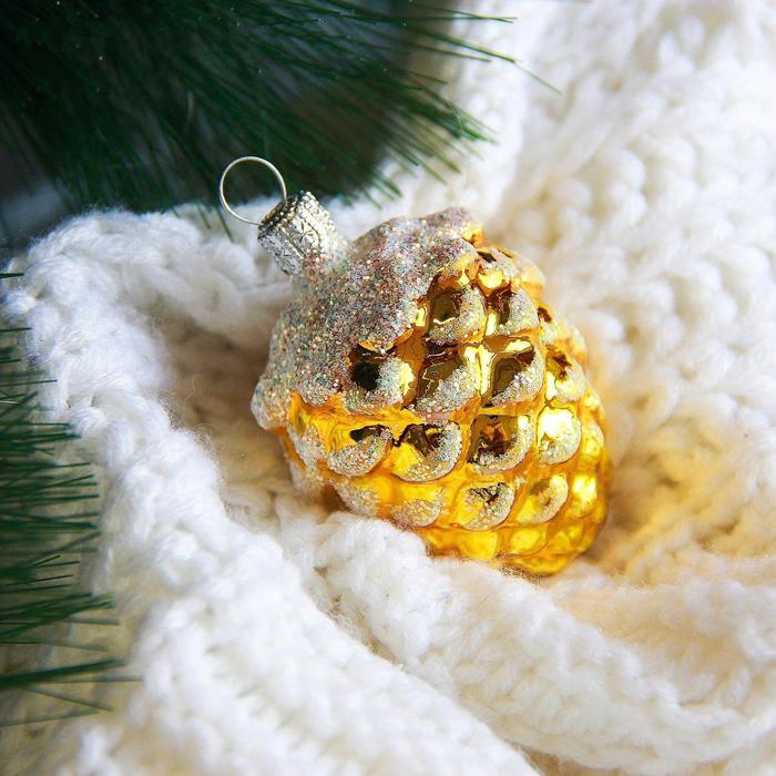 Эта игрушка превращает ёлку в пространство зимней гармонии и семейного тепла. Форма шишки и золотые тона работают вместе, чтобы сделать праздник частью вашей личной истории. Используйте её как самостоятельный элемент или как фоновое дополнение — одинаково хорошо усиливает атмосферу Нового года и предпраздничное ожидание.