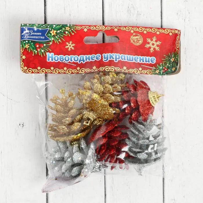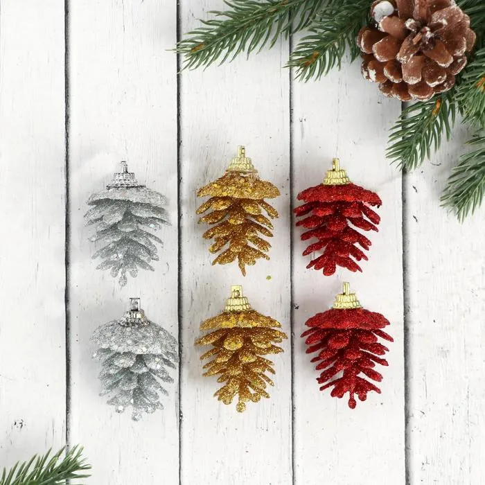Ёлочная игрушка "Шишка с мерцанием" (набор 6 шт) 3х5 см, МИКС — Характеристики