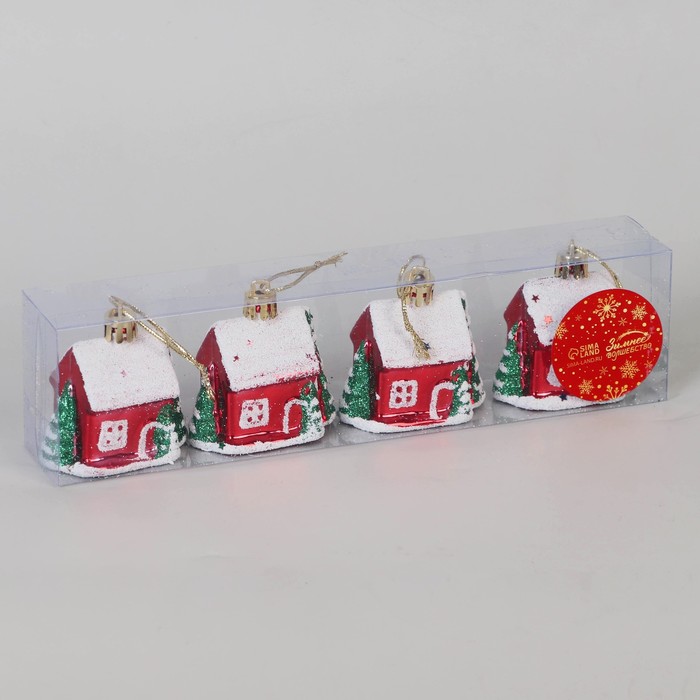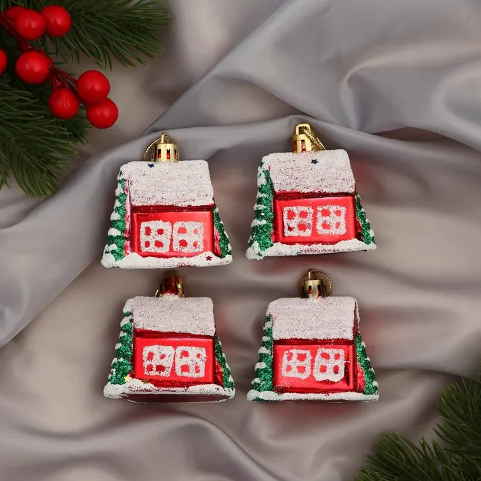 Ёлочная игрушка "Сказочный домик" (набор 4 шт) 5х6 см, красный — Характеристики