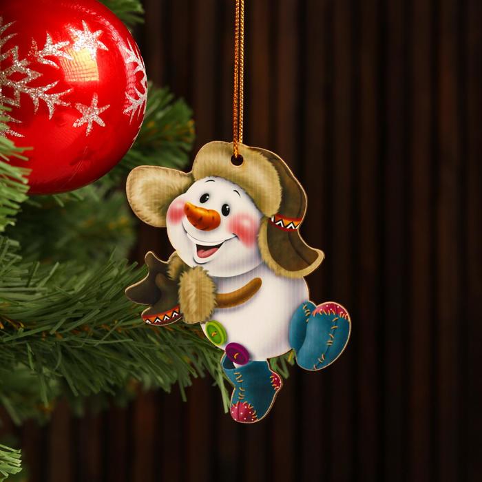 Ёлочная игрушка «Снеговик весёлый», 9.5×7 см