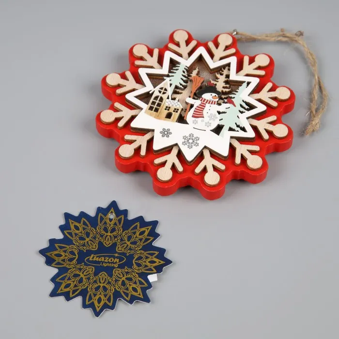 Ёлочная игрушка «Снежинка со снеговиком», от батареек, свечение тёплое белое — Характеристики