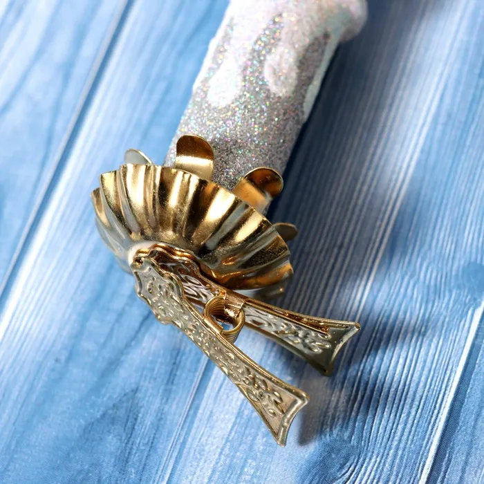 - Форма — свеча, образ покоя и торжественности, напоминающий традиционные мотивы Нового года.
