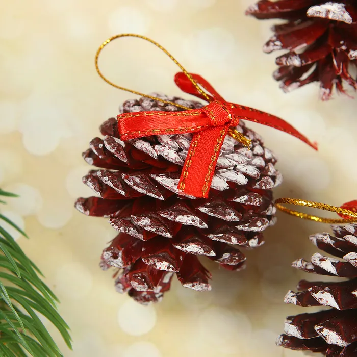 Ёлочная игрушка «Заснеженые шишки», с бантиком, набор 6 шт. — Характеристики