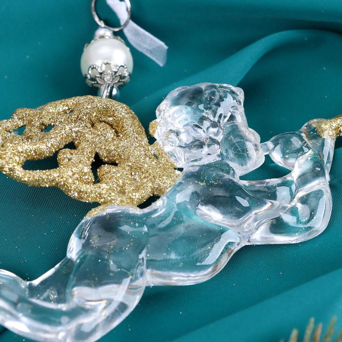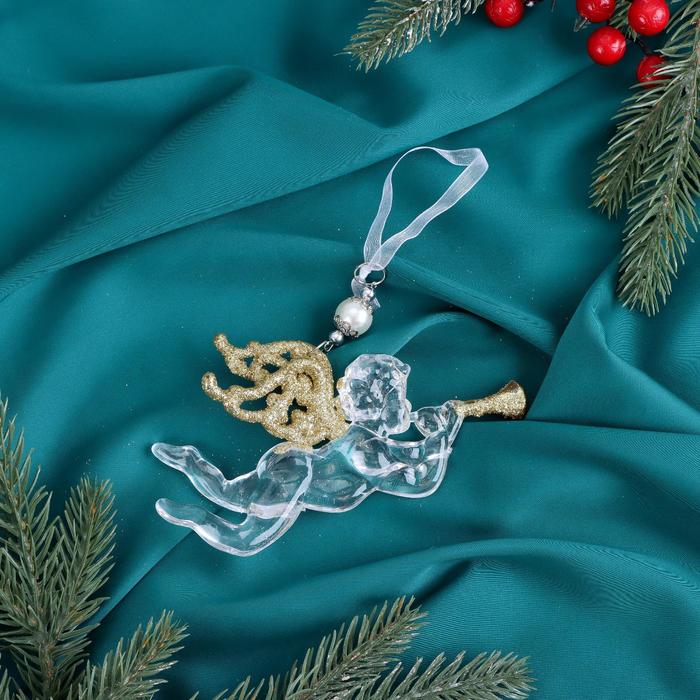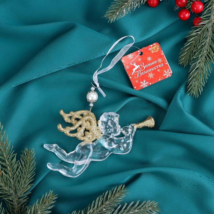 Ёлочная игрушка «Зимнее волшебство. Ангел с трубой», 14×8 см, прозрачно-золотой — Характеристики