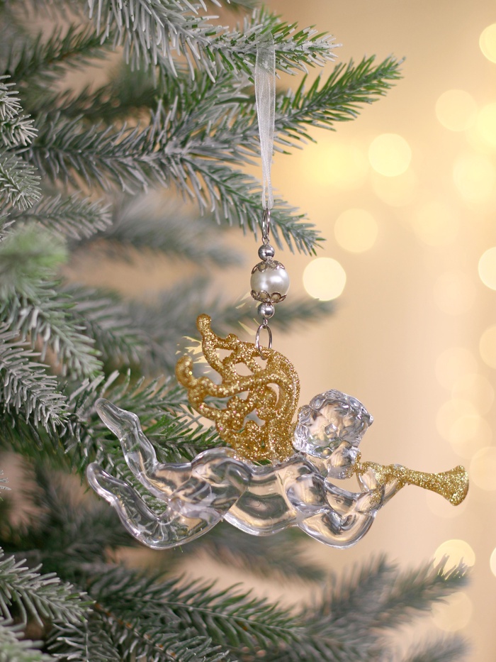 Пусть на вашей ёлке прозвучит голос праздника. Ёлочная игрушка «Ангел» — это образ света, чистоты и ожидания добра. Прозрачный силуэт ангела с золотыми акцентами создаёт впечатление зимнего сияния — лаконично, празднично, по-настоящему новогодне.