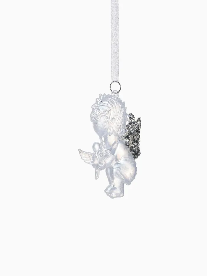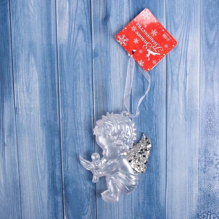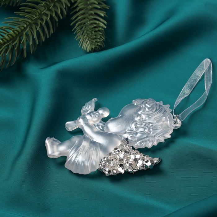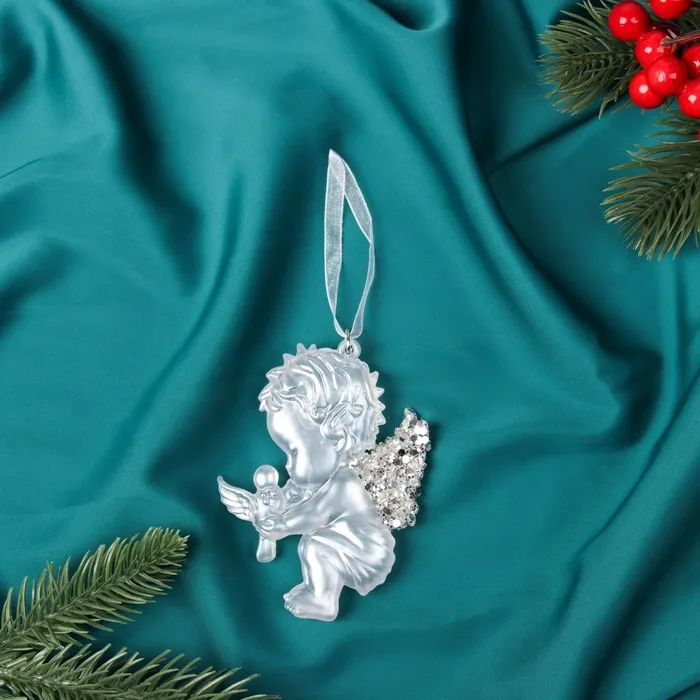 Ёлочная игрушка «Зимнее волшебство. Ангелочек с голубем» пластик, 10×7 см, белый — Характеристики