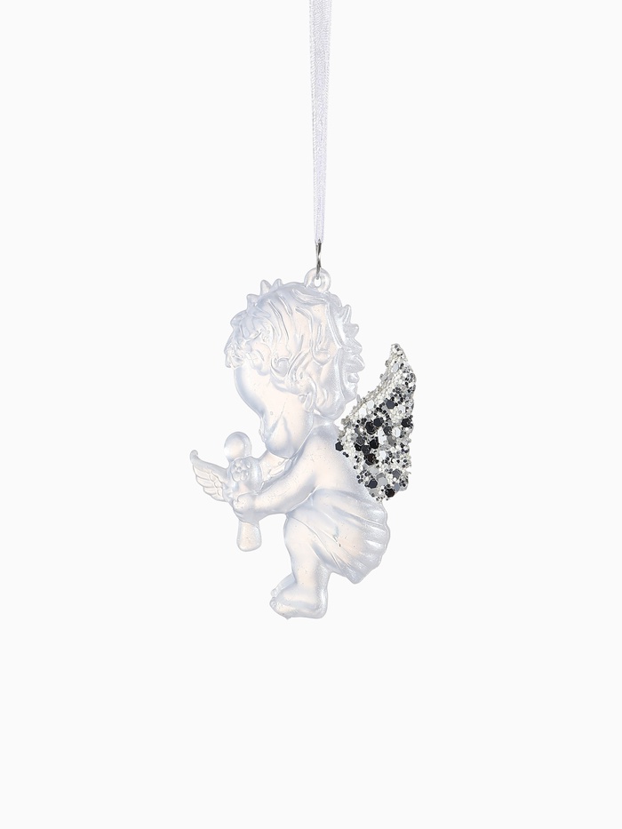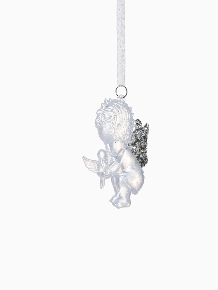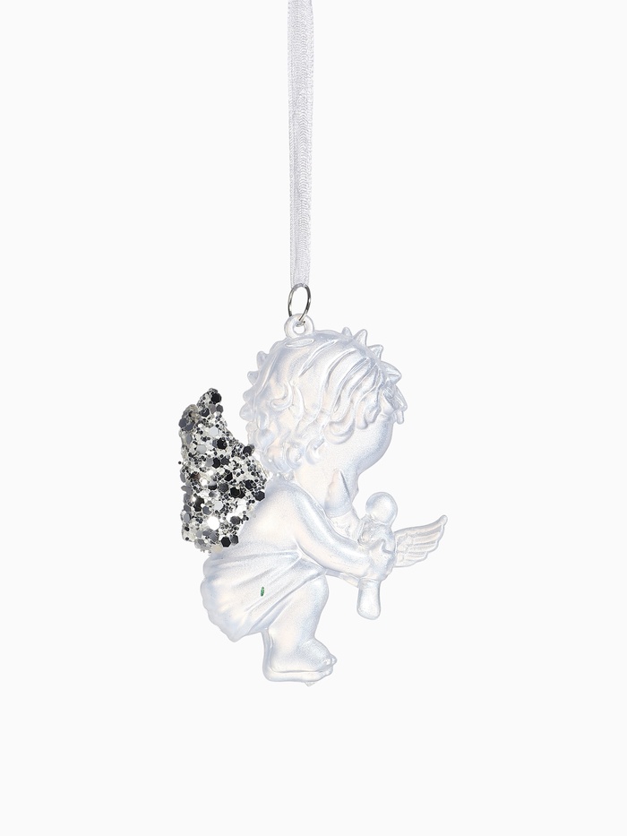 Белая ёлочная фигурка ангела с голубем станет символом чистоты и мира в новогоднем оформлении. Размером 10×7 см, она органично вписывается в стилистику ар-деко, классики и скандинавского дизайна, подчёркивая спокойствие и светлую атмосферу праздника.