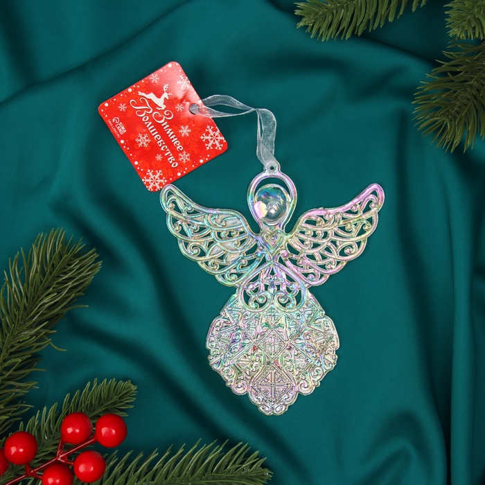 Ёлочная игрушка «Зимнее волшебство. Ангелок перелив», 12×10.5 см, прозрачный — Характеристики