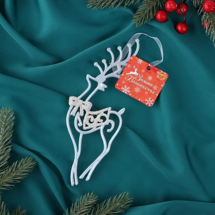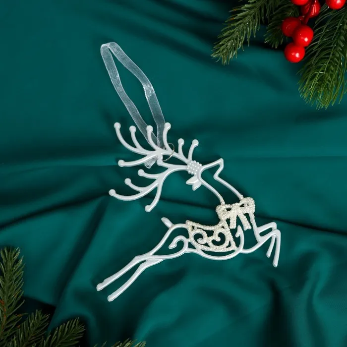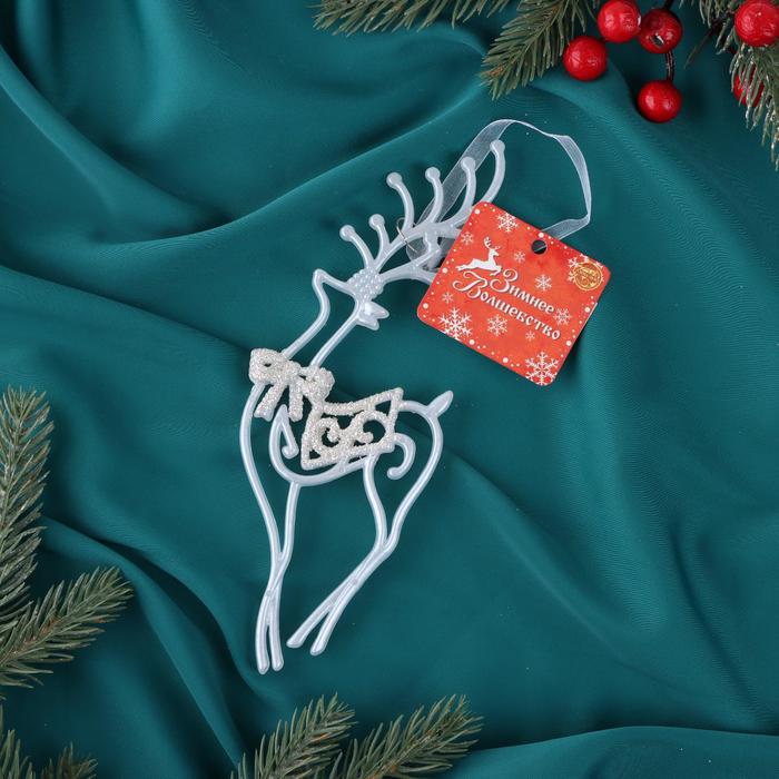 Ёлочная игрушка «Зимнее волшебство. Бегущий олень блеск» пластик, 10х19 см, белый, МИКС — Характеристики