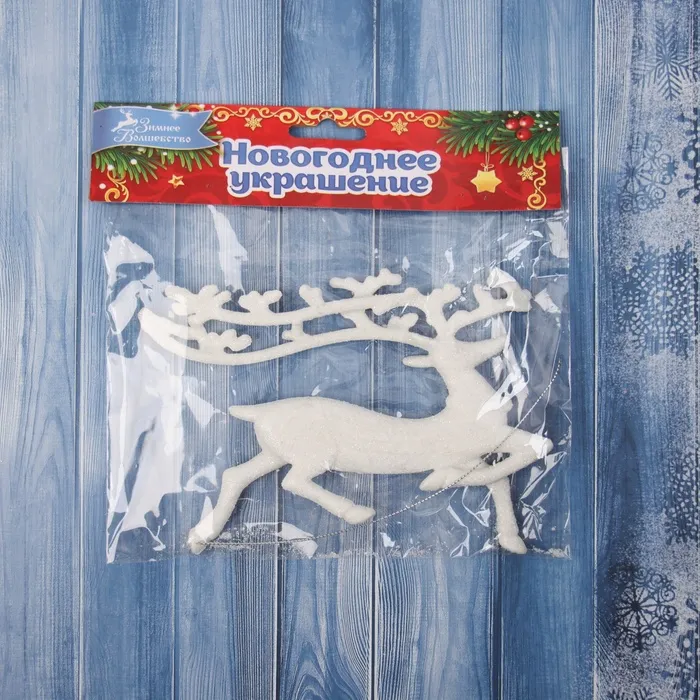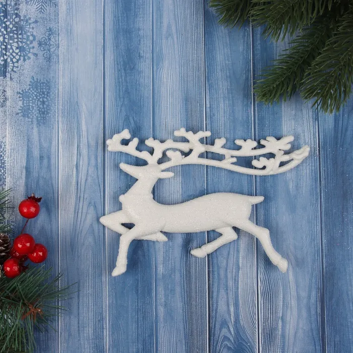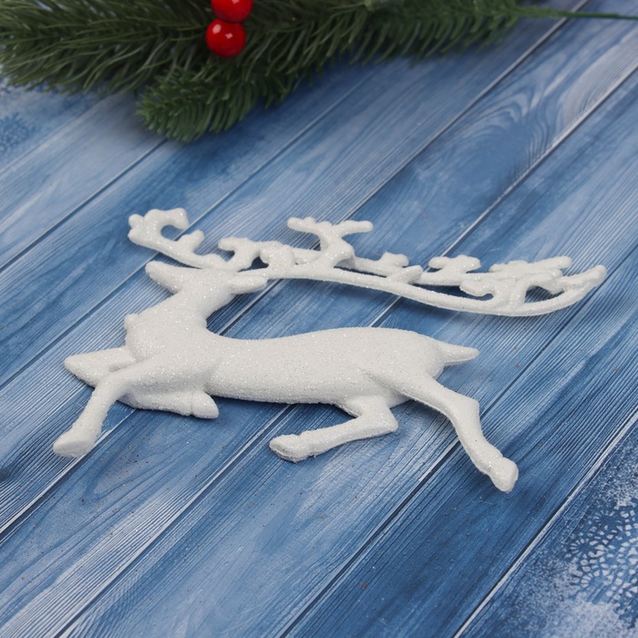 Ёлочная игрушка «Зимнее волшебство. Бегущий олень» пластик, 10х15 см, белый — Характеристики
