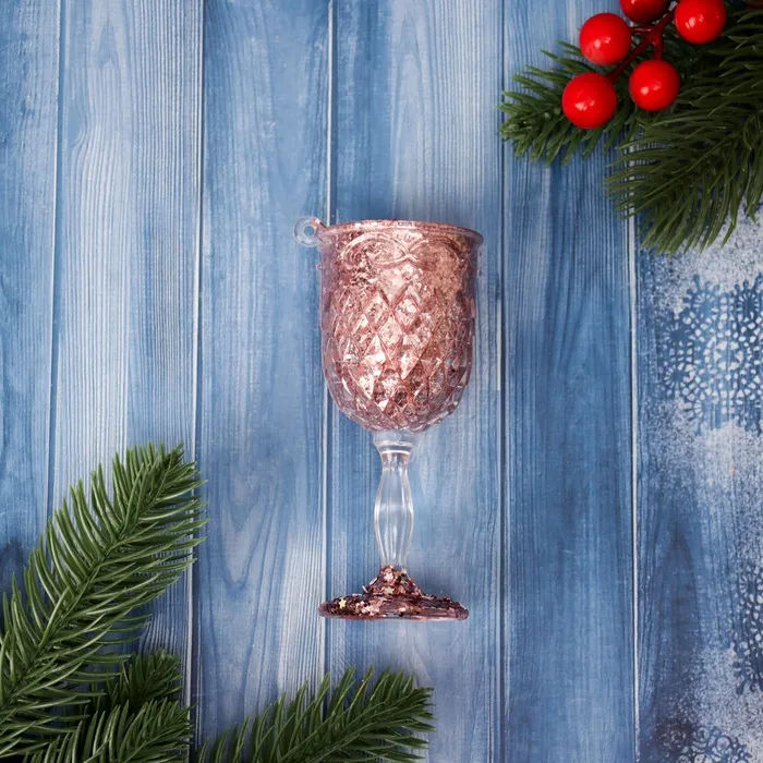 Ёлочная игрушка «Зимнее волшебство. Бокал сияние блеск» пластик, 10,5х4,5 см, прозрачно-розовый