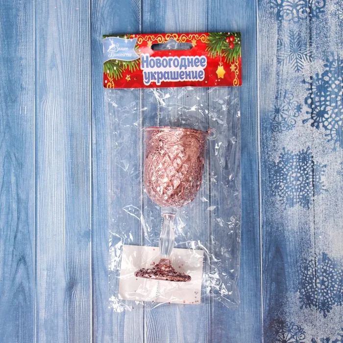 Ёлочная игрушка «Зимнее волшебство. Бокал сияние блеск» пластик, 10,5х4,5 см, прозрачно-розовый — Характеристики