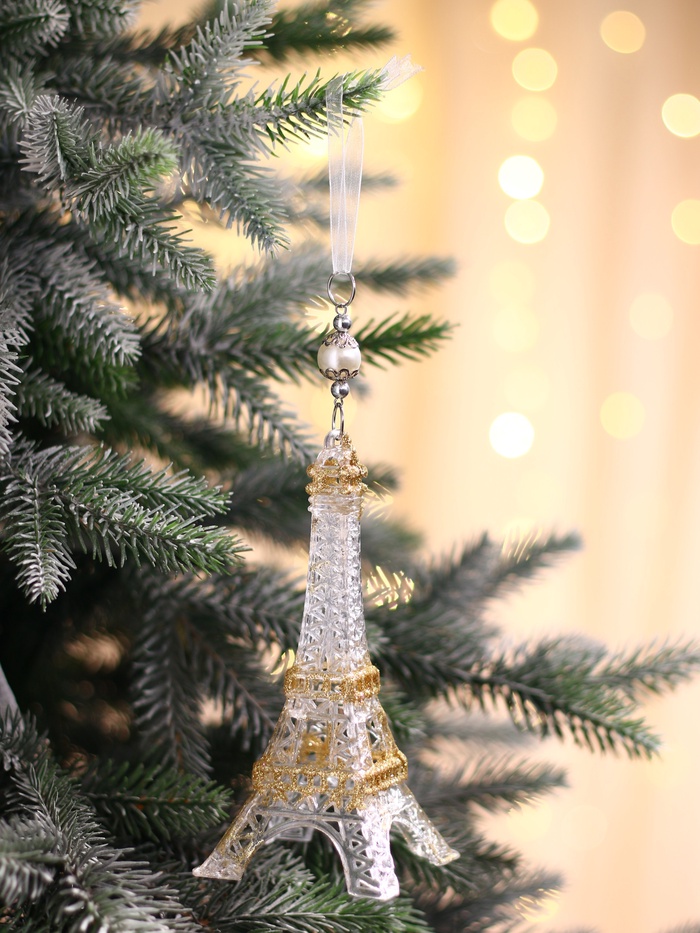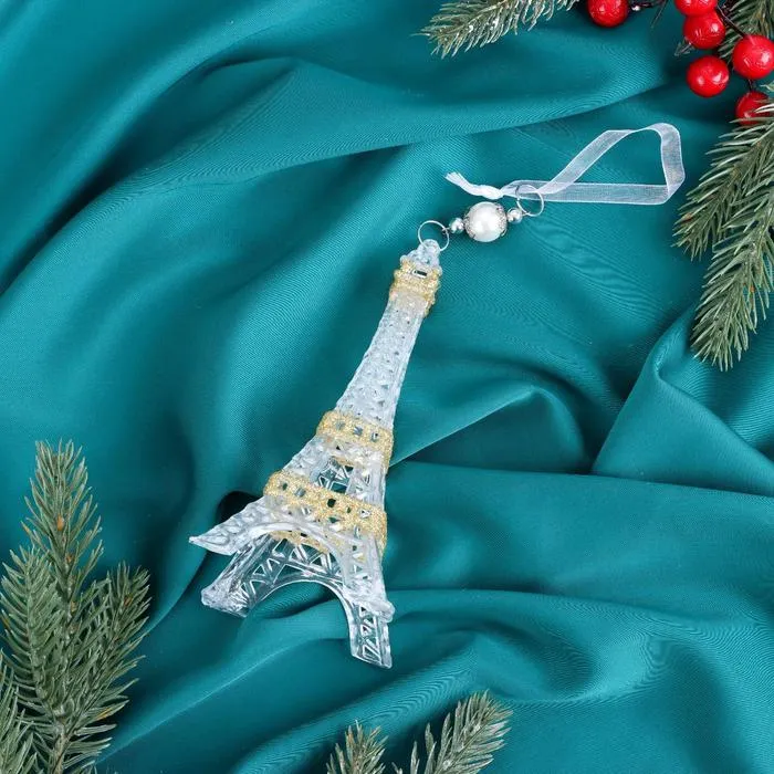 Пусть столица праздника засияет на вашей ёлке. Ёлочная игрушка в виде Эйфелевой башни — это не просто украшение, а символ путешествий, мечты и торжества красоты. Прозрачный пластик с резными узорами и золотистые акценты создают эффект зимнего блеска — строго, но с намёком на роскошь.