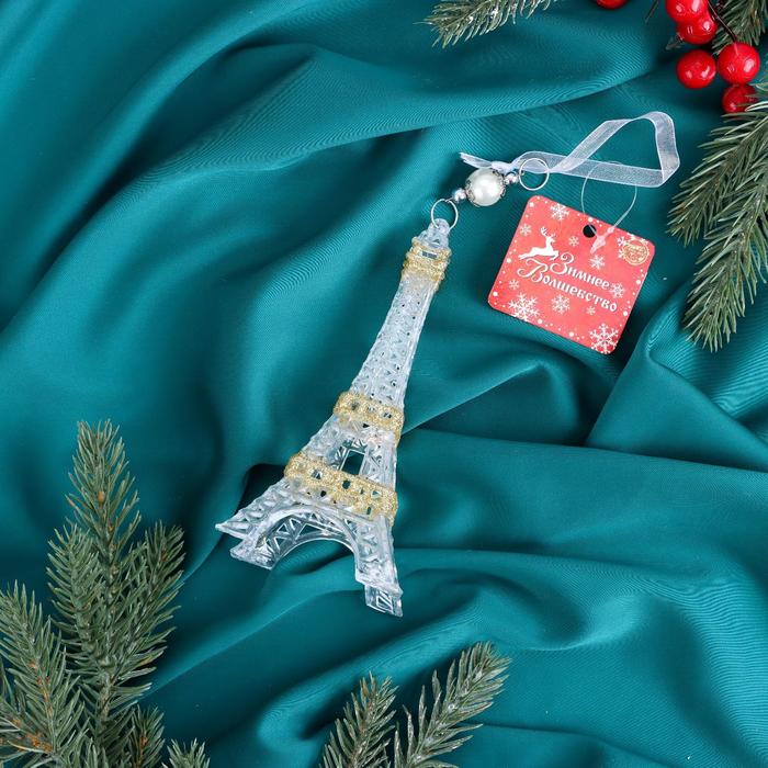 Ёлочная игрушка «Зимнее волшебство. Эйфелева башня», 6.5×14.5 см, прозрачно-золотой — Характеристики