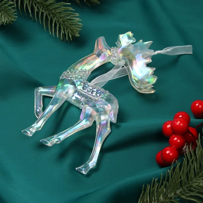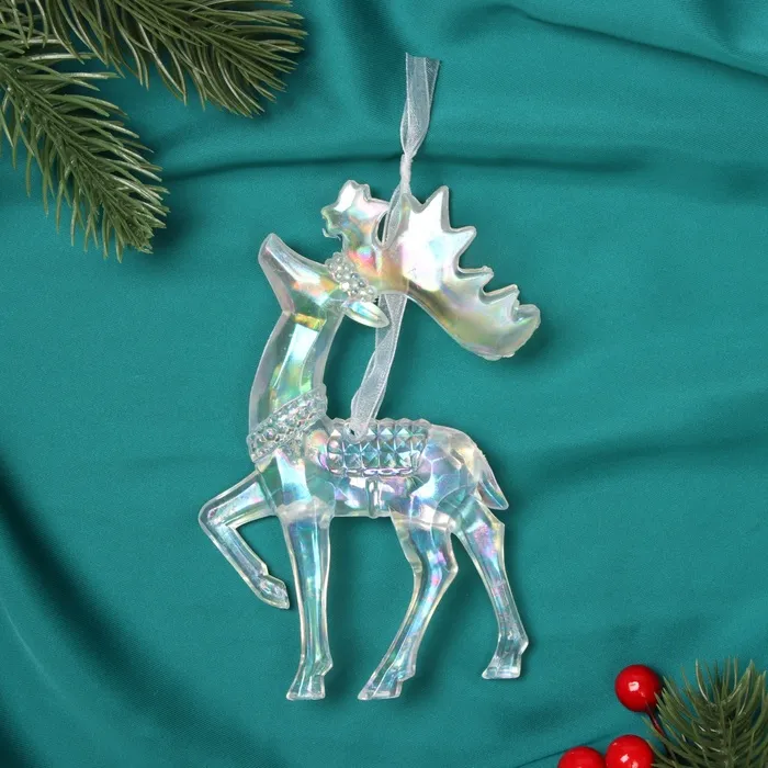 Ёлочная игрушка «Зимнее волшебство. Гордый олень» пластик, 13х8 см, прозрачный перелив — Характеристики