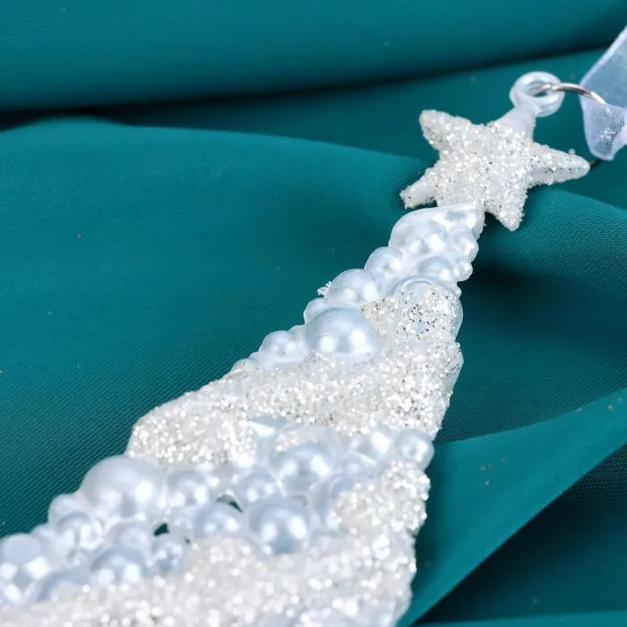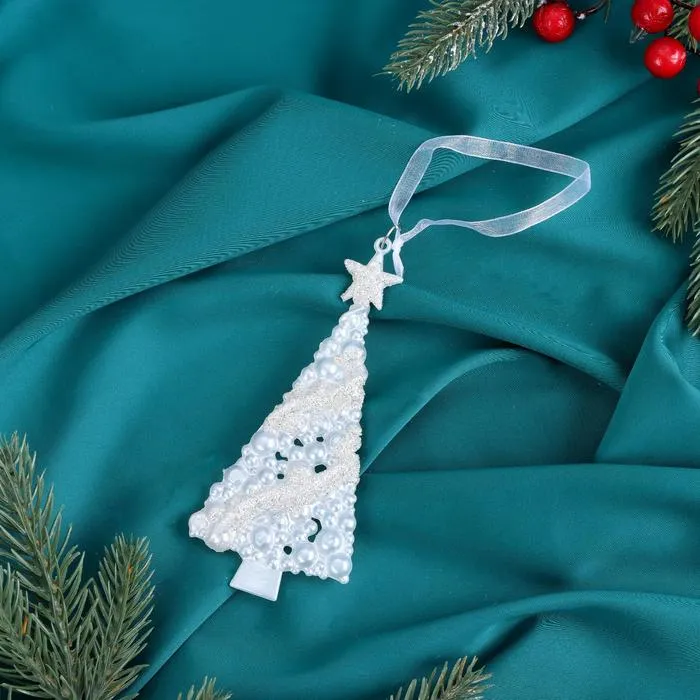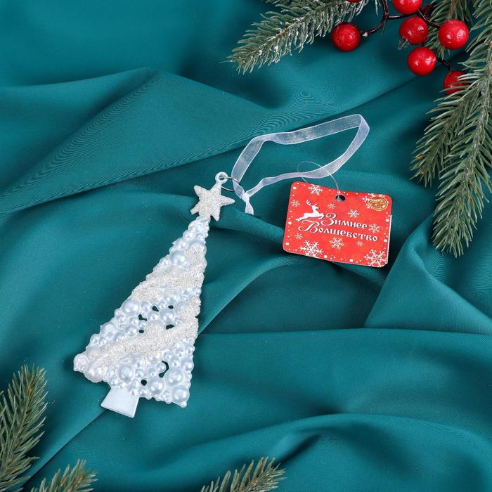 Ёлочная игрушка «Зимнее волшебство. Ёлка нарядная блеск» пластик, 7х14 см, белый