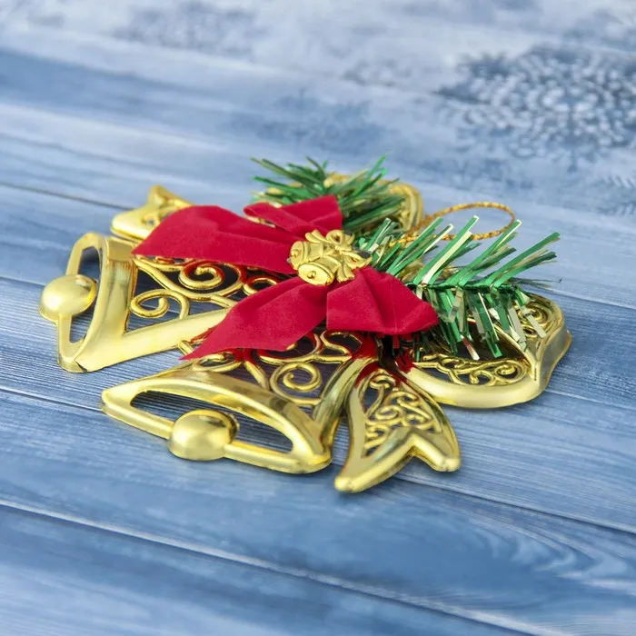 Ёлочная игрушка «Зимнее волшебство. Колокольчик двойной с бантиками» пластик, 12.3×9.5 см, золото — Характеристики
